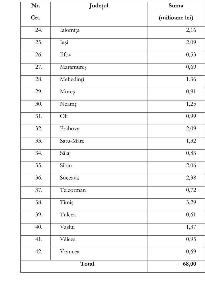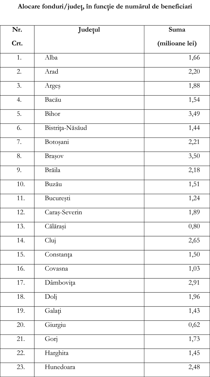 Vă prezentăm, în anexă, repartizarea fondurilor pe judeţe.