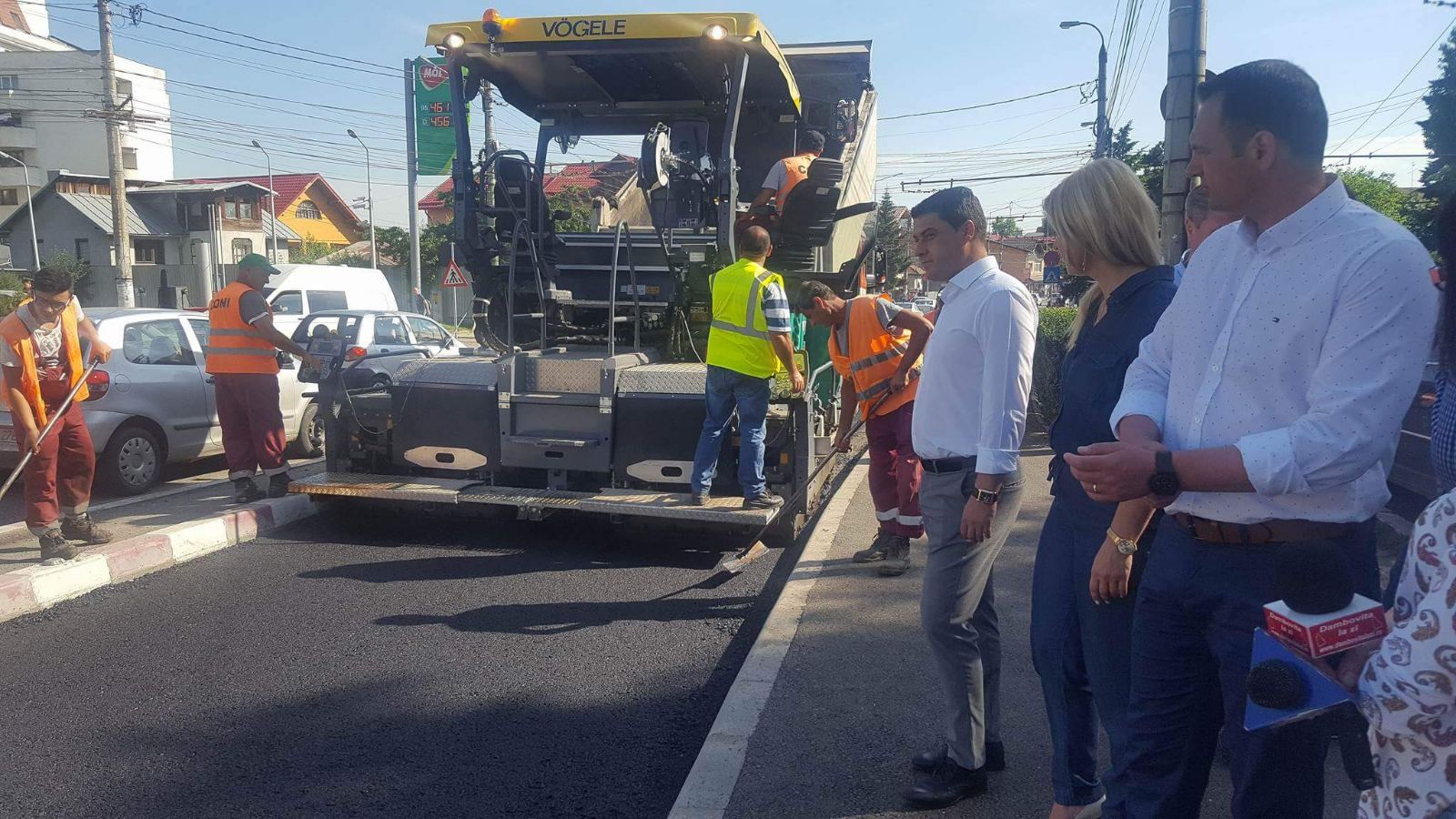 Ieri, pe șoseaua Găești, zona dintre pod și sensul giratoriu de la combinat, s-au turnat undeva la 800 de tone, astăzi vrem să realizăm cam același lucru, astfel încât să reușim ca primul strat de asfalt să-l dăm cât putem de repede, urmând ca după aceea să dăm stratul de uzură.