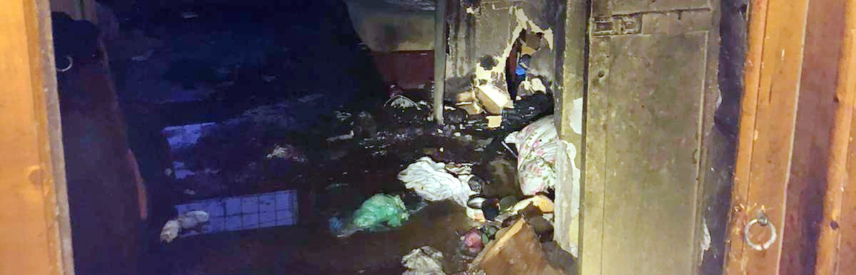 Au ars: o canapea, articole de îmbrăcăminte și alte materiale textile, iar pereții interiori (din rigips) au fost deteriorați.