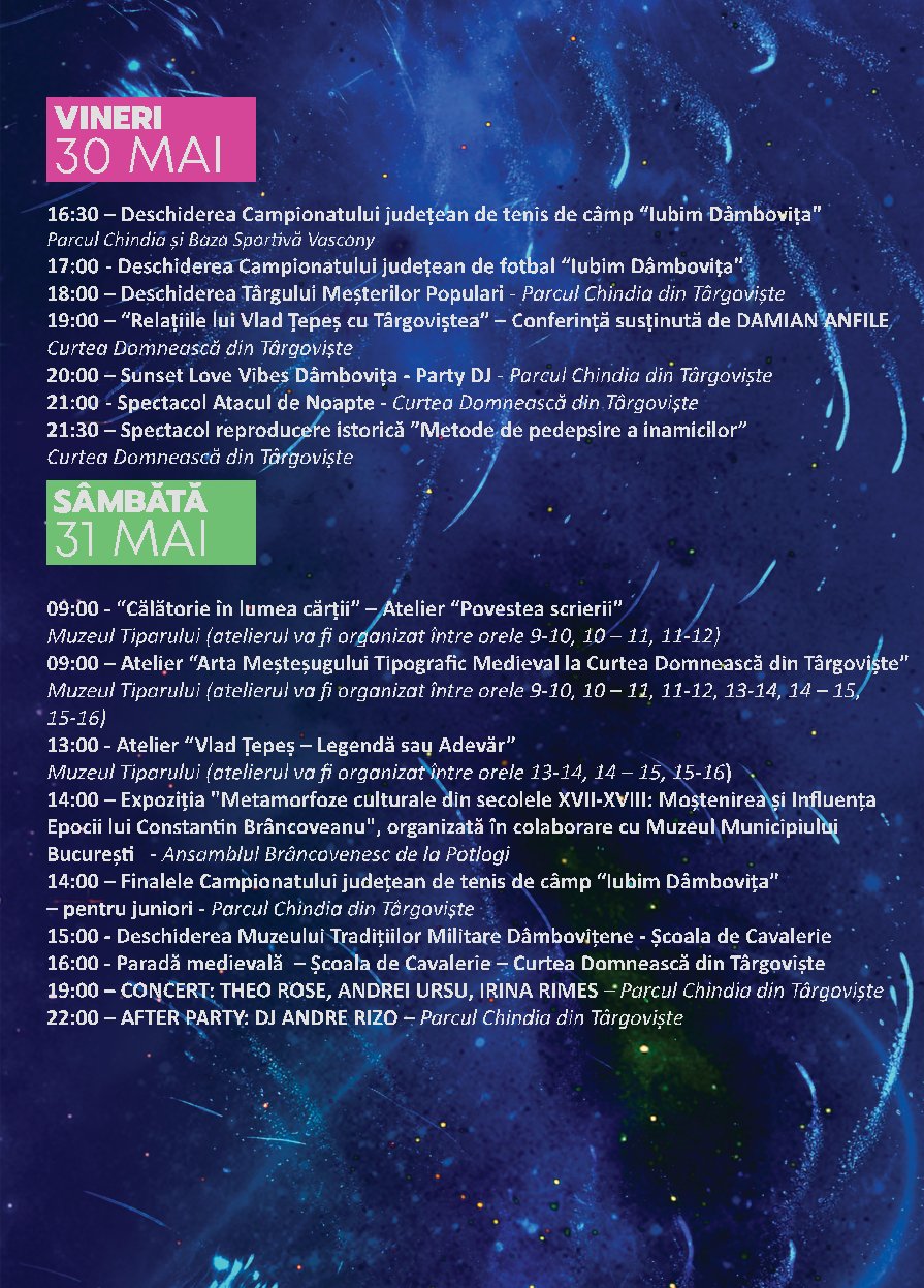 În minivacanța de 1 Mai 2026, Consiliul Județean Dâmbovița, prin Complexul Național Muzeal „Curtea Domnească” Târgoviște, a pregătit o surpriză frumoasă tuturor celor care doresc să-şi petreacă timpul liber la unele dintre
