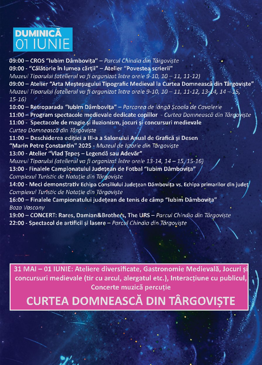 În minivacanța de 1 Mai 2026, Consiliul Județean Dâmbovița, prin Complexul Național Muzeal „Curtea Domnească” Târgoviște, a pregătit o surpriză frumoasă tuturor celor care doresc să-şi petreacă timpul liber la unele dintre
