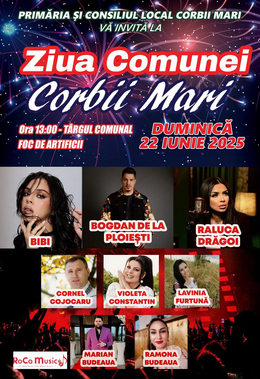 De la mic la mare, vom sărbători împreună, cu spectacole pentru toate vârstele și gusturile, concerte, voie bună, foc de artificii! Mai mult, pentru a ne arăta respectul și prețuirea, VOM PREMIA cuplurile de aur, care au împlinit 50 de ani de căsătorie, precum și copiii care au încheiat anul școlar cu media 10 ori au obținut rezultate deosebite la olimpiade. E sărbătoarea noastră, e ziua noastră!”, este mesajul transmis de către Ionuț Bănică, primarul comunei Corbii Mari.